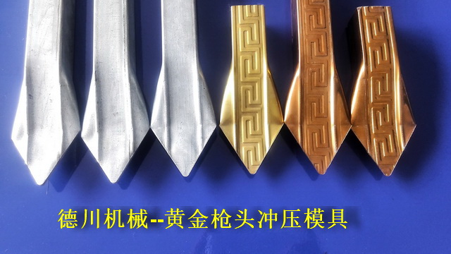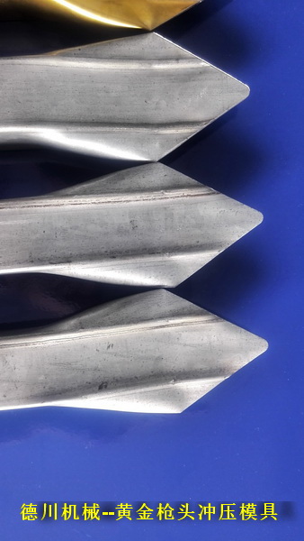 黄金枪头冲压模具,一次成型,废料自动排出,无需人工排出废料,效率高、操作安全,模具安装简易,可以任意调节冲不同规格的管。