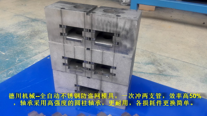 全自动不锈钢防盗网模具,一次冲两支管,效率高50%,轴承采用高强度的圆柱轴承,更耐用,各损耗件更换简单。